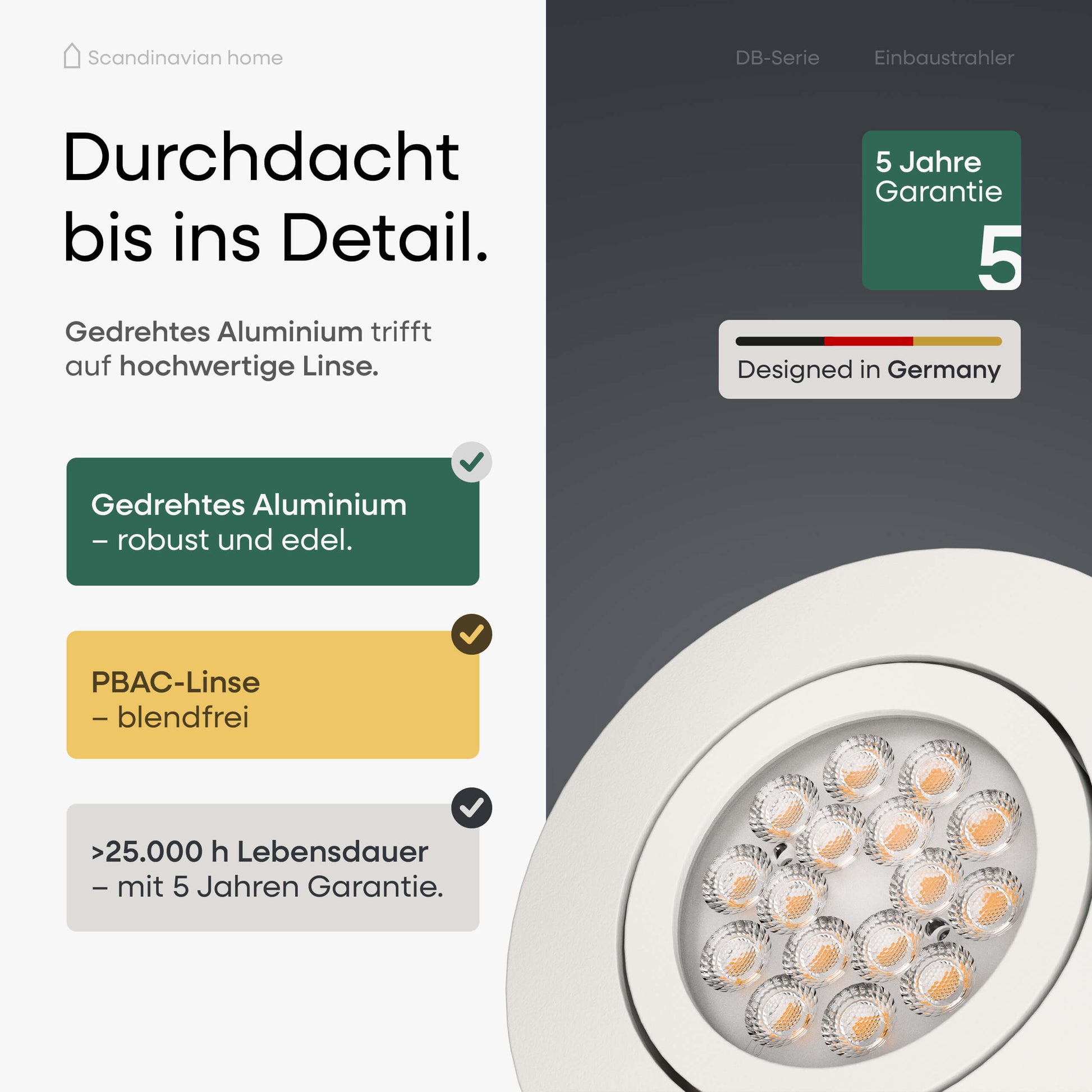 LED Einbaustrahler Dimmbar Schwenkbar Weiß-Matt I DB-Serie